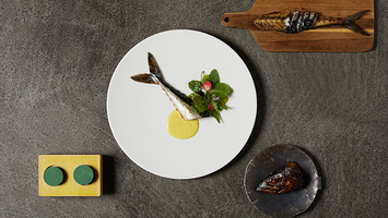 Taco di sgombro affumicato, kiwi fermentato e miso