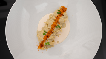 Tagliolino, burro d'ostrica, mandorle, 'nduja