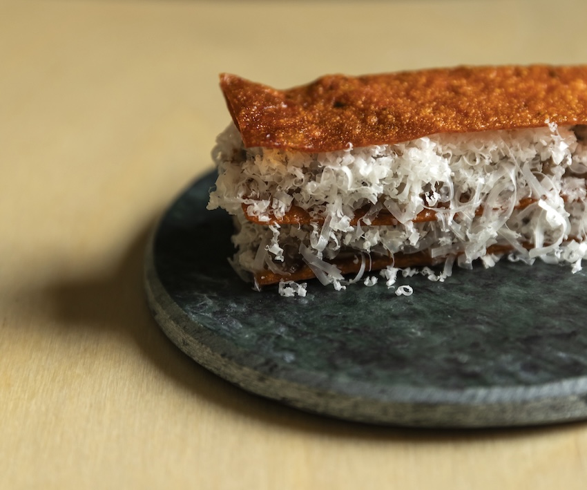Il nuovo spazio di Altatto nasce da questa evoluzione, da un bisogno di coerenza e di libertà. Nel luogo che lo ha accompagnato fino a oggi non era più possibile esprimere pienamente la propria idea di cucina. Con il supporto dell’artista Nicola Lorini, ogni dettaglio è stato ripensato, con un’attenzione particolare alla relazione tra cucina e sala. Oggi il passaggio è morbido, continuo, privo di barriere: il suono non divide più, e la cucina si apre al dialogo diretto con chi siede in sala.