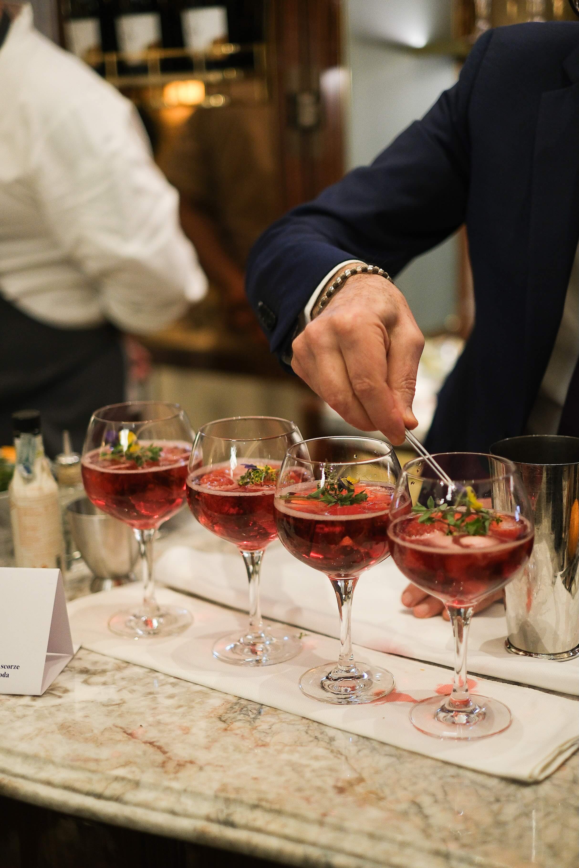 Il racconto della serata si è snodato attraverso una successione di "storie liquide" e bites d'autore, celebrando tanto il rito del cicchetto veneziano quanto il concetto di Aperitivo contemporaneo. Al bancone, la maestria della mixology della Serenissima ha visto Facundo Gallegos e Ludwig Negri celebrare la tradizione locale con il “Doge’s Tipple” e il “Cardinale del Doge”, entrambi costruiti sull'anima del Select Aperitivo. Una ricerca cromatica e gustativa che è proseguita con Antonio Ferrara, capace di stupire gli ospiti grazie ad “Armonia”, un blend intrigante dove la dolcezza della fragola ha incontrato la profondità dell'Aceto Balsamico di Modena IGP. A chiudere il cerchio della miscelazione, Walter Bolzonella ha proposto il suo “421 Venezia Mia”, un omaggio alla freschezza del territorio in cui il Select si è unito alle bollicine del Prosecco Brut Crede Bisol per celebrare la storia di Venezia, il suo millenario compleanno e i prodotti che hanno reso grande la Repubblica Marinara.
