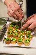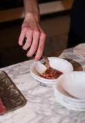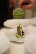 A completare l’esperienza, un percorso di assaggi firmato da alcuni dei più riconosciuti chef del panorama lagunare: Giuseppe Ricci ha giocato sui contrasti, passando dalla delicatezza del "Tonno rosso con pomodoro e origano" alla golosità di una "Bombetta di agnello" creata in collaborazione con Gruppo Galli. Donato Ascani ha invece scelto di reinterpretare un classico lagunare, il "Baccalà mantecato", arricchendolo con carpione e tè matcha, piatto realizzato con la materia prima di Seafood from Norway, storicamente legato a Venezia sin dai viaggi di Pietro Querini. L'orto e il vegetale sono stati i protagonisti della proposta di Salvatore Sodano, che ha servito una "Cialdina di ceci con insalatina di rosoline e piselli", rifinita dall'Aceto Balsamico di Modena IGP. Infine, Carmine Amarante ha curato un raffinato doppio assaggio: una "Tartare di ricciola affumicata servita con Kristal Caviar" e un "Uovo di quaglia marinato con spuma di chorizo", presentato all'interno di Salix 3D di Artisia.