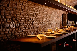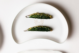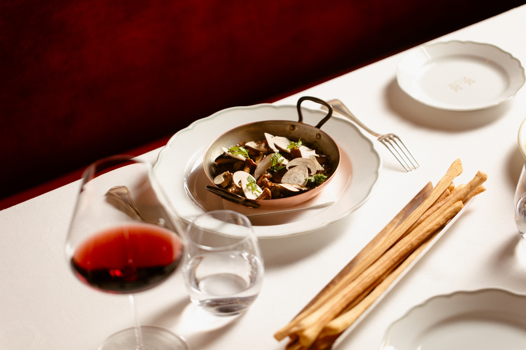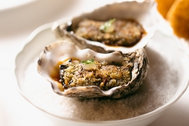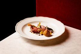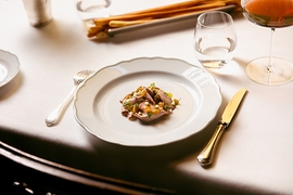 Ispirandosi a "Il cuoco piemontese perfezionato a Parigi" alcuni piatti illustrtano un guizzo di Francia appunto, come l’Ostrica gratinata con pane alle erbe e scorza di limone, servita nel suo guscio con un fondo di pollo; e ancora la Lingua alla Persillade: una lingua di vitello in fettine sottilissime, dalla sapidità intensa, accompagnate da una salsa verde a base di prezzemolo, impreziosita da un concassé di lardo in carpione, che ammorbisce il tutto. Poi la “Minestra di riso”, un risotto che muta al mutare delle stagioni, che nella sua espressione autunnale vede in superficie lamelle di funghi freschi a crudo, tartufo nero e un’emulsione a base di champignon. E ancora il Piccione alla Marengo che trae ispirazione dalla ricetta “Piccioni con intingolo di gambari” dello stesso volume citato in precedenza. Il piatto, a base di piccione, viene valorizzato dalla salsa, che nasce dall’incontro tra un fondo di piccione e una bisque di crostacei, intrecciando i sentori profondi della selvaggina con i sapori del mare. A completare la composizione, una coscia farcita con foie gras e tartufo nero, racchiusa in una panatura croccante.