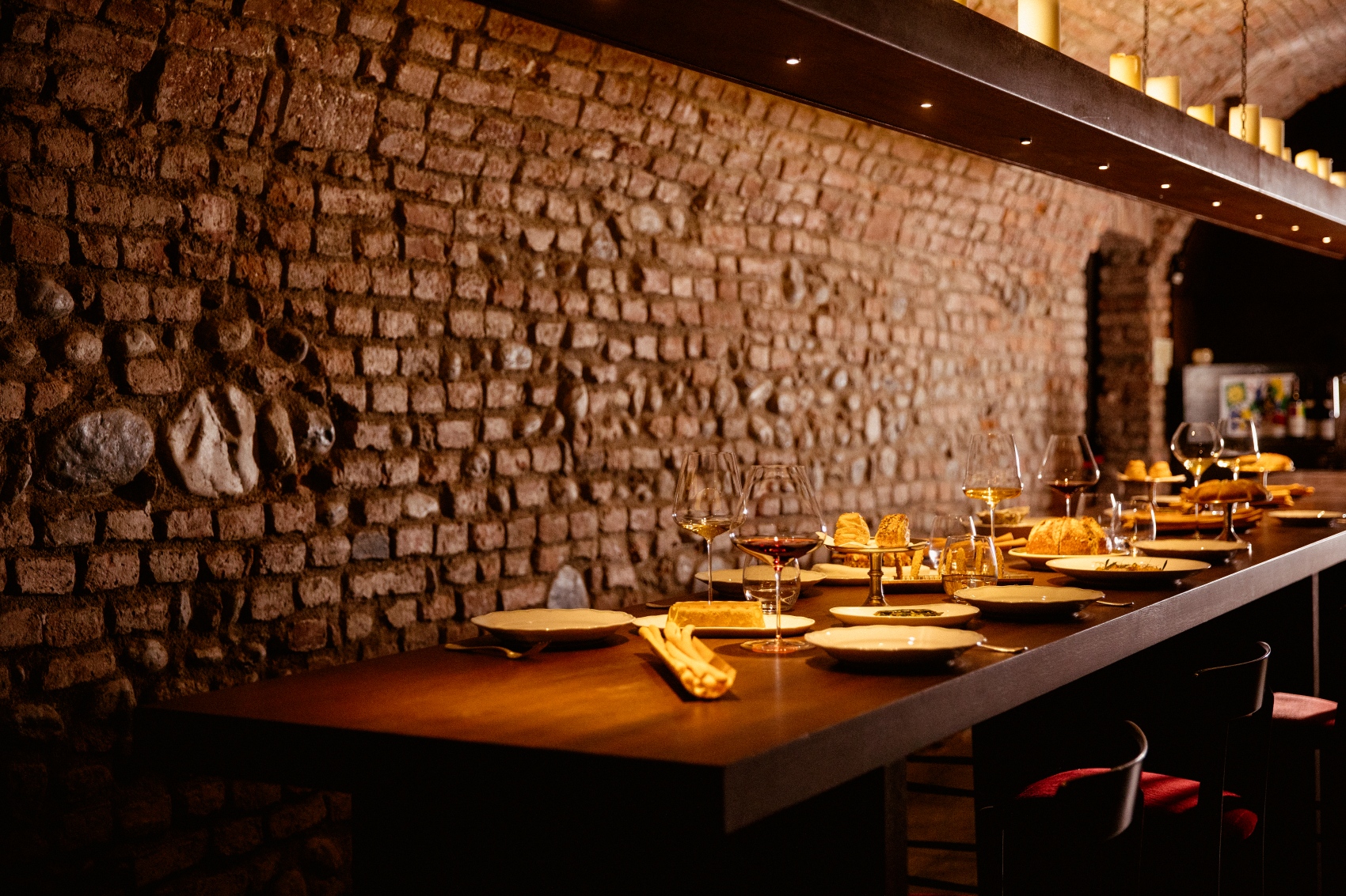 La cantina poi conta oltre 4.000 etichette e più di 16.000 bottiglie, con una selezione attenta tra Langa, Toscana, Piemonte e Francia, in particolare la Borgogna e la Champagne.