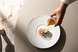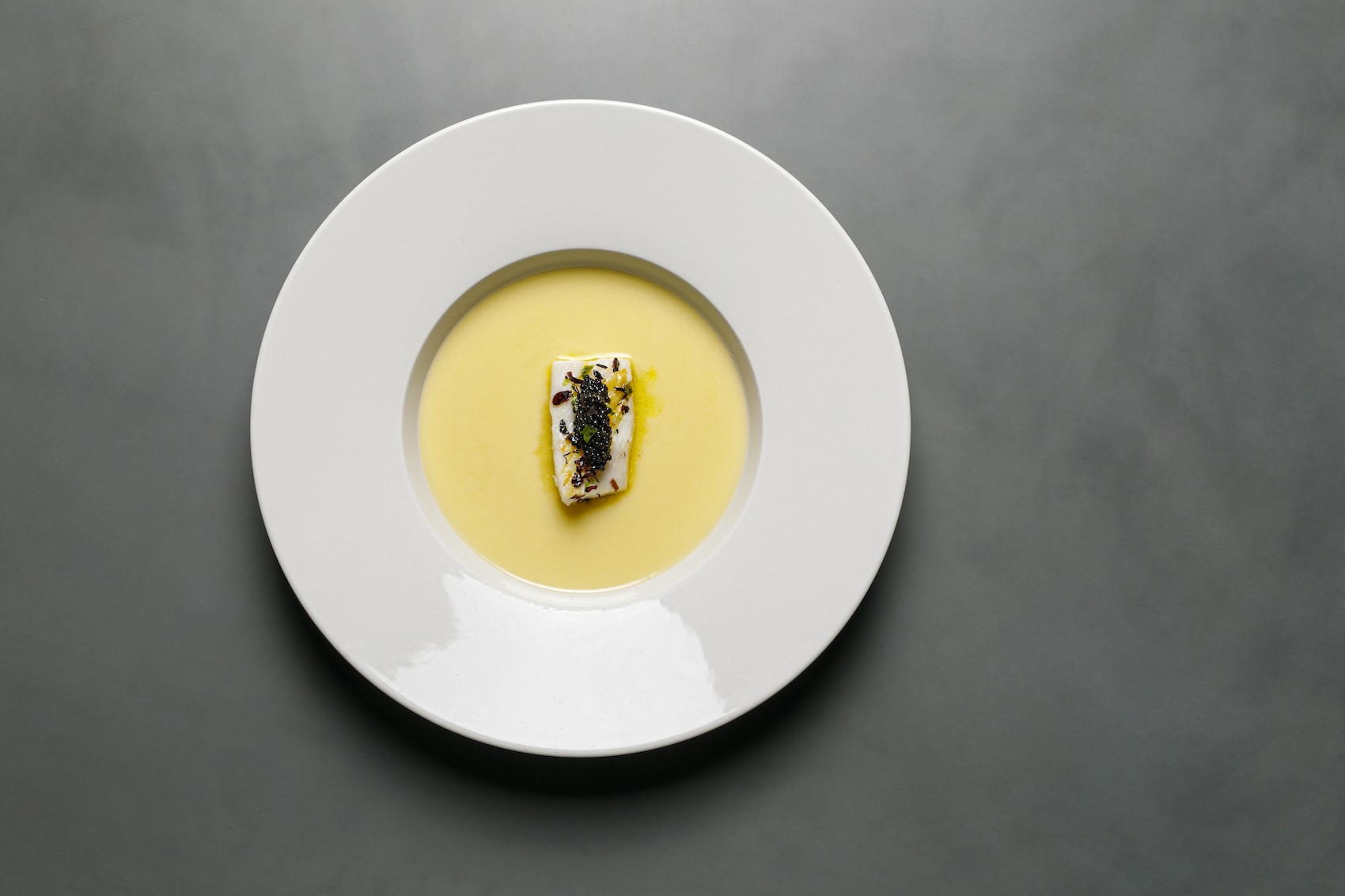 Anche sul fronte ittico non cambia la visione dello chef, in carta per esempio il rombo, arrotolato con all’interno una sua mousse, assoluto quindi, in cui l’umidità viene mantenuta con l’utilizzo di una salsa che aggiunge profumo e acidità al beurre blanc e zafferano, coltivato a san Gimignano, a 20 km dal piatto.
