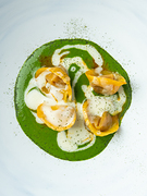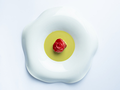 Non sono mancati i rimandi al patrimonio gastronomico italiano, con piatti come gli “Spaghettini con gambero rosso di Mazara profumato al limone” di Celestino Drago o la “Lasagnetta di farina di Carruba con ragù d’asino, capuliato di pomodoro siccagno e lamelle di Ragusano DOP” di Gianluca Leocata, interpretazioni poetiche della tradizione in chiave contemporanea.