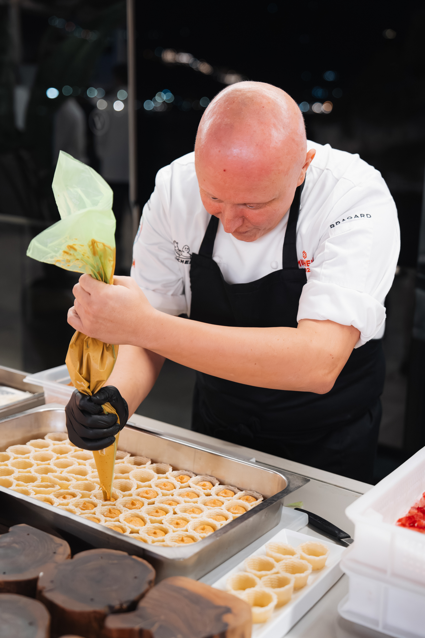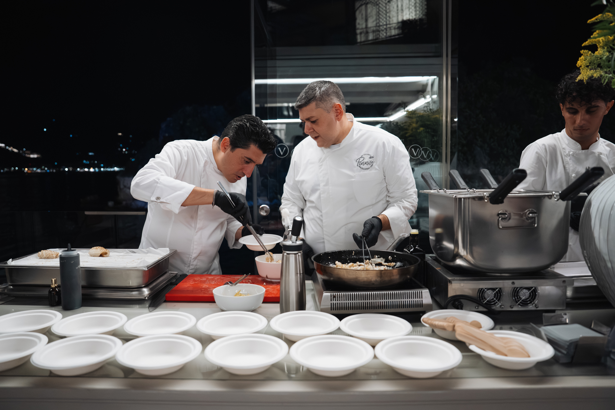 Avvolti dalla luce del tramonto e dal profumo del mare, gli ospiti hanno vissuto un percorso di gusto orchestrato da alcuni dei più grandi chef del panorama italiano e siciliano. Un susseguirsi di creazioni salate e dolci, amuse-bouche e piatti signature ha raccontato l’identità mediterranea con eleganza e tecnica, accompagnato da una selezione di vini pregiati, cocktail d’autore e birre artigianali.