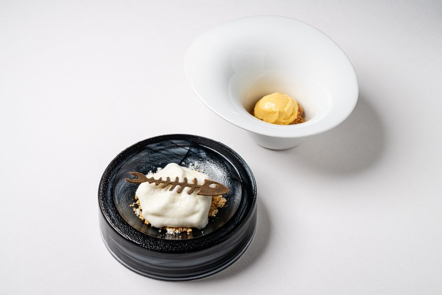 Ma il suo non è un burro qualsiasi: nasce da un beurre blanc acido, con aceto, vino, scalogno e limone, arricchito da ostrica grattugiata e foglie di erba ostrica. Un equilibrio tra mare e terra, semplicità e raffinatezza.