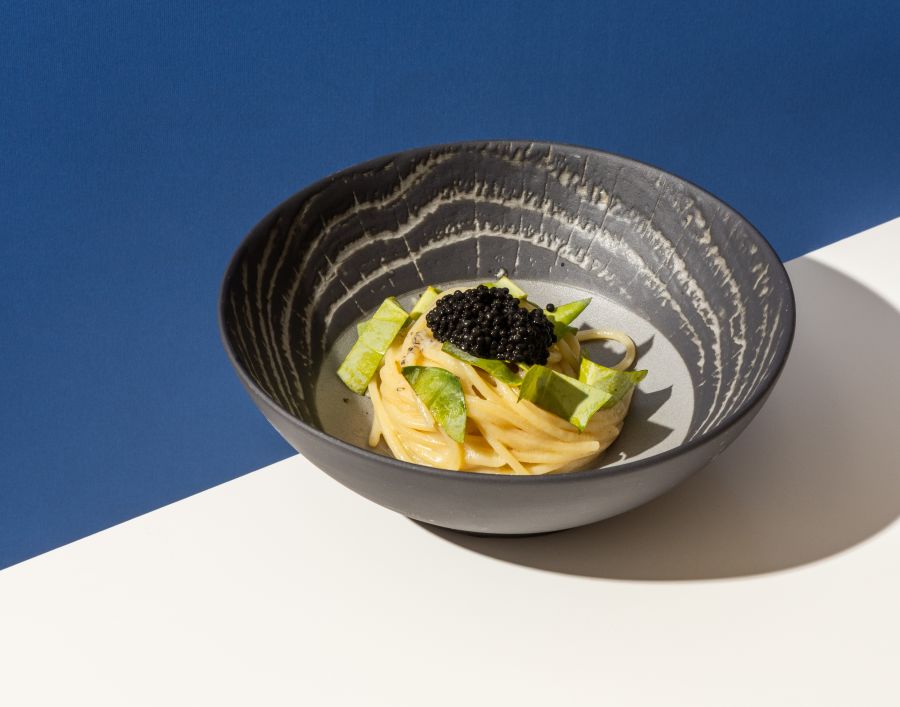 «La pasta al bronzo ha una presa diversa, trattiene meglio la salsa, restituisce pienezza», spiega Basso. «Ma soprattutto ha un carattere». Come lui, come la sua cucina: diretta, precisa, mai banale.