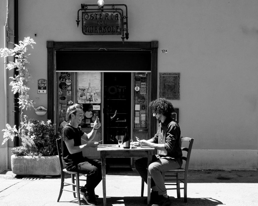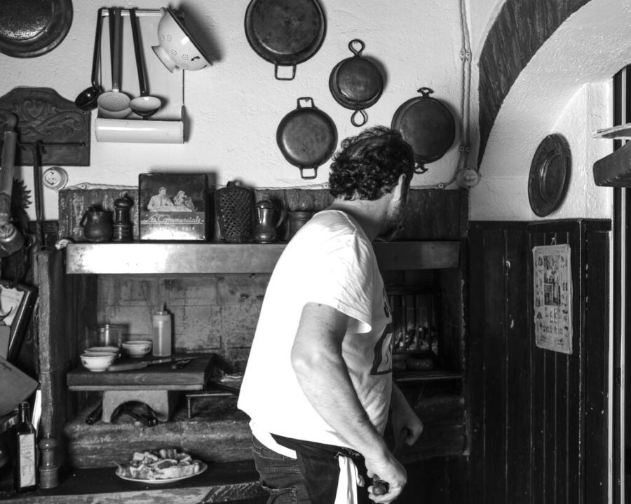 L’Osteria del Mirasole è stata aperta nel 1989 a S. Giovanni in Persiceto, alle porte di Bologna, da un giovane ventiduenne, Franco Cimini, che aveva il sogno di aprire un ristorante proprio, dopo anni di gavetta in cucina. il suo sogno era quello di gestire un’osteria come quella che sorgeva a pochi metri dall’attuale Mirasole, che fino alla grande guerra era stata gestita da una signora che aveva 9 figli: Franco era – ed è ancora – un romantico, appassionato di storia e di storie e desiderava un luogo dove poter fare una cucina semplice, diretta. Con il tempo, l’osteria cresce in fama. Nonostante le dimensioni raccolte, diventa un punto di pellegrinaggio per chi cerca l’Emilia vera, quella delle chiacchiere fitte, del vino rosso versato a generose caraffe e di un ragù che sa di casa. Sopra al ristorante, Franco ha anche dato vita a una locanda: poche camere in legno, accessibili da una scala elicoidale cinquecentesca, per chi vuole prolungare il viaggio e dormire immerso nell’atmosfera del Mirasole. L’esempio paterno, la disciplina sul lavoro, lo hanno fatto crescere in fretta, instillandogli il desiderio di emanciparsi e farsi artefice di un gusto, tornando nell’alveo accogliente dell’infanzia, quella vissuta a metà tra Abruzzo ed Emilia – ed è questa crasi che detta il ritmo del gusto del Mirasole: il recupero del fuoco, della legna che arde e che imprime il gusto alle carni, di abruzzese memoria, e i punti cardinali dell’emilianità, la pasta fresca, le carni, il latte e il suo derivato principe, il parmigiano.