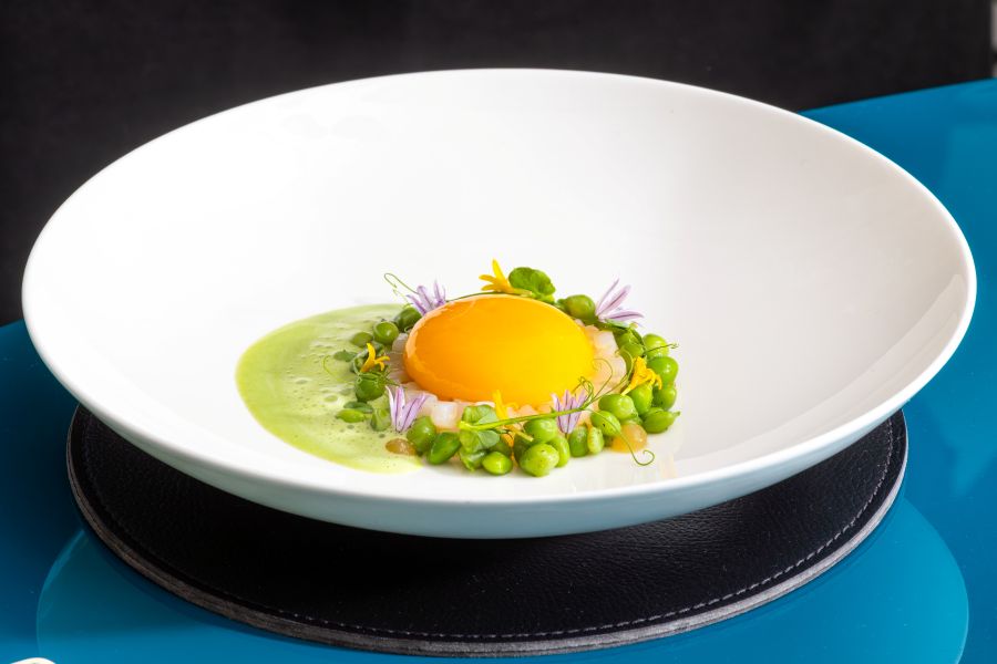Nel ristorante invece, la pasta è presente ma con misura. «Abbiamo un piatto in carta perché siamo in Italia, ma non è il cuore del menù» spiega. Fino a poco tempo fa proponeva uno spaghetto alle vongole, cotto in un brodo di zucchine alla brace e mantecato con colatura d’alici, finocchietto e una salsa iodata alle ostriche, completato con polvere di limone nero. Ora sta lavorando a un nuovo piatto con brodo di cicale di mare, che promette la stessa intensità.