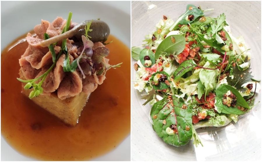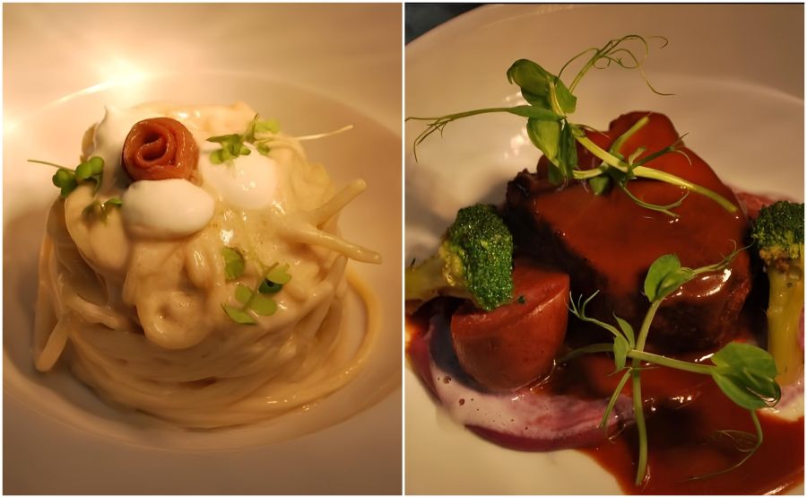 Diego è talmente legato a questo luogo che, per rilassarsi, gli piace pescare proprio nel lago di Bracciano, che lambisce la sua cucina. La filosofia culinaria di chef Filipponi è radicata nella tradizione romana e italiana, ma con un approccio contemporaneo, che reinterpreta i classici con tecniche moderne, senza stravolgerli, per esaltarne i sapori autentici. Lo stile è mediterraneo, influenzato dal territorio laziale del Lago di Bracciano, ricco di pesce d’acqua dolce, erbe aromatiche e verdure di campagna. Propone un Risi e Bisi rivisitato con asparagi romani e polvere di buccia di piselli o un Filetto di coregone affumicato con salsa di olive taggiasche e finocchietto selvatico, che celebra i prodotti del lago, valorizzati anche in un Ciauscolo di luccio. La matrice romana ha addirittura generato una variante del Pollo alla Cacciatora, fatto col coregone di Bracciano invece del classico pollame, unendo il rustico romano alla freschezza del lago.