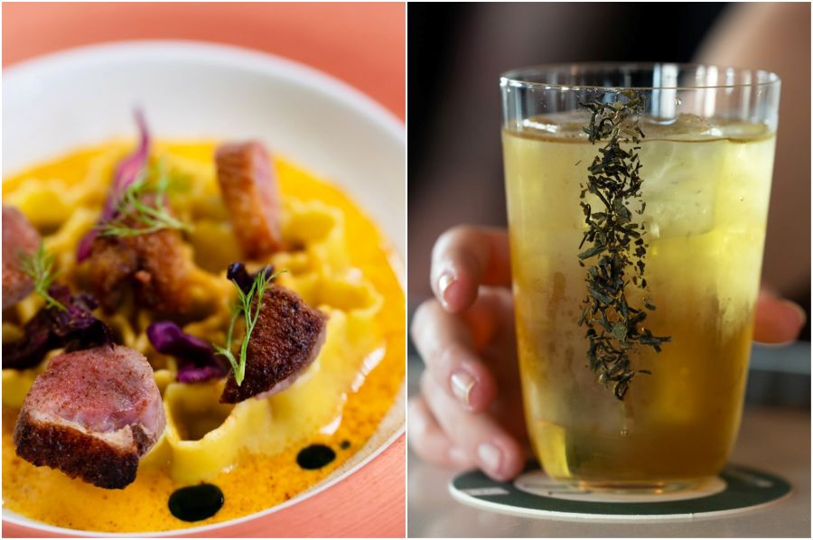 Sulla linea guida della tradizione mediterranea e sfruttando il legame con la suocera ligure, non c’è da stupirsi se, in pianura, si trovano primi come Trofie con ciuffetti di calamari scottati, burro allo champagne e polvere di limone bruciato, Pasta al pesto, stracciatella, pomodorini o Pasta coi gamberi, bisque alla vaniglia, tartare di gambero blu. Per Barilla Al Bronzo, Chef Rossetti ha pensato a un altro modo di vedere la pasta al burro, con lo Spaghettone con burro affumicato all’ulivo, gel al karkadè, camomilla e limone bruciato. Nasce da una passeggiata nei campi per raccogliere la camomilla e dalla contemplazione di un ulivo secolare: l’istinto da cuoco ha fatto il resto, unendo questi due ingredienti apparentemente così distanti. La pasta cuoce in un brodo di camomilla, è poi mantecata in un burro all’ulivo (ottenuto da braci di ulivo) e arricchita da gel di karkadè per dare acidità e aromaticità. Si spolvera sia con camomilla che con polvere di limone bruciato e il risultato è la sintesi di come la pasta possa essere la base di una tradizione che si fa innovazione, partendo da una semplice passeggiata.