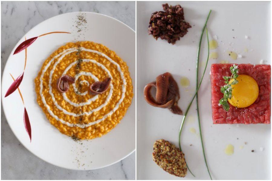 Ma cosa ama Fabio? Si dedica ai piatti con una filosofia culinaria di montagna e collina, con una sensibilità rara per la natura e il vegetale. Non ha paura a usare tagli poveri di carni e pesci, perché essi vengono arricchiti con il proprio carattere, a dimostrazione che le idee possono trasformare qualsiasi ingrediente in qualcosa di nobile (alcune suggestioni: Rapa rossa, ibisco, melograno e pepe rosa; Zucca arrosto, caco mela, nocciole in salamoia, salsa al Marsala; Coppa di Mangalica alla brace con salsa all’anice e radicchio rosa; Bistecche di ricciola con limone, pak-choi e riduzione di ricciola). Identità vuol anche dire che Brescia omaggia Piacenza oppure che la tipicità di quest’ultima può essere riletta, come nel Coniglio piacentino con salsa del manzo all’olio di Rovato, nella Cipolla col ripieno del Casoncello bresciano, nel Tortello tipico di ricotta ed erbette impreziosito da bottarga di trota alpina o nei Pisarei, interpretati con aglio, olio, peperoncino e vongole. L’Emilia Romagna è grande terra di pasta e chef Pellicardi lo sa bene, sfruttando l’amore per questa preparazione, legato al ricordo della nonna che preparava i Casoncelli: adora i gesti che animano la chiusura di quegli scrigni celanti un ripieno magico. Anche la pasta ha una propria stagionalità: Natale è un Tortellino di carne, mentre l’estate è un tortello più leggero, magari col ripieno liquido.