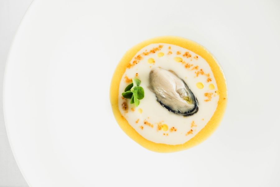 Il cuore della sua poetica gastronomica batte nell’orto che cura da due anni e mezzo: una piccola “biblioteca vegetale” stagionale da cui nascono piatti che mettono la verdura al centro della narrazione. Cavolo nero, rape, barbabietole, porri, broccoli, pere, prugne, melograni – e soprattutto lei, la scarola della tradizione partenopea, che torna sulla scena come un personaggio shakespeariano sempre nuovo. Non è un contorno, ma protagonista: la sua scarola con castagne, pinoli e uvetta è un piatto vegano che cristallizza Napoli in forma colta e contemporanea, con la dolcezza antica delle feste e l’equilibrio di un quadro caravaggesco.