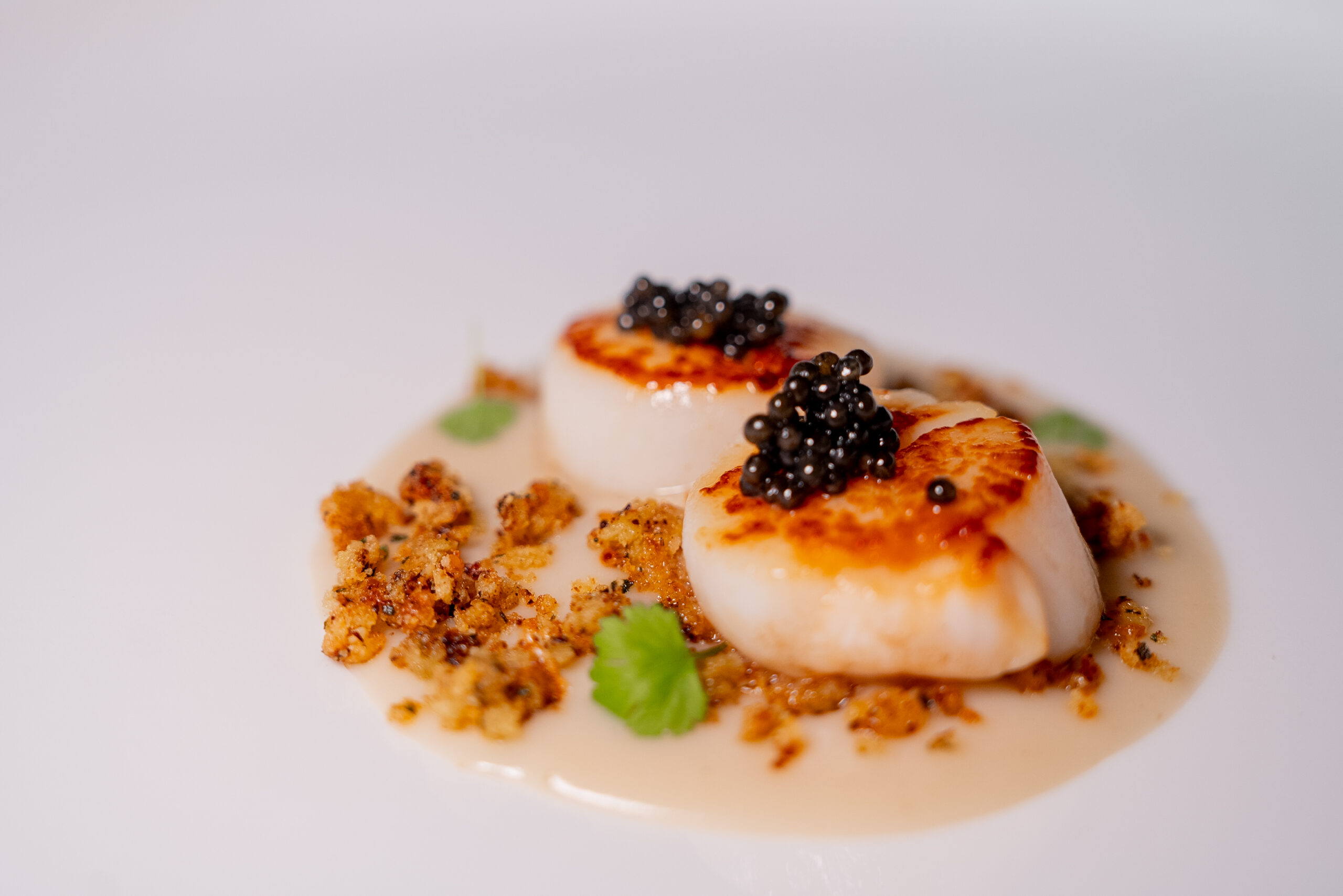 Accanto a questi, emergono creazioni che raccontano la sua ricerca di equilibrio tra tecnica e sensibilità, come la Capasanta, caviale, crema di topinambur e crumble, un piatto in cui la delicatezza del mare incontra la profondità della terra, e il Risotto, gelato, porcini e cerfoglio. Un carnaroli riserva San Massimo è il chicco usato per questo risotto squisito mantecato con burro chiarificato, e servito con una palla di gelato ai porcini al centro. Da mangiare con il cucchiaio per tirare su il riso cremoso insieme al gelato e sentire il contrasto caldo–fresco giocare piacevolmente in bocca.