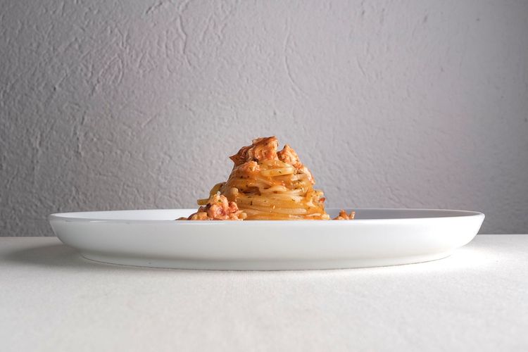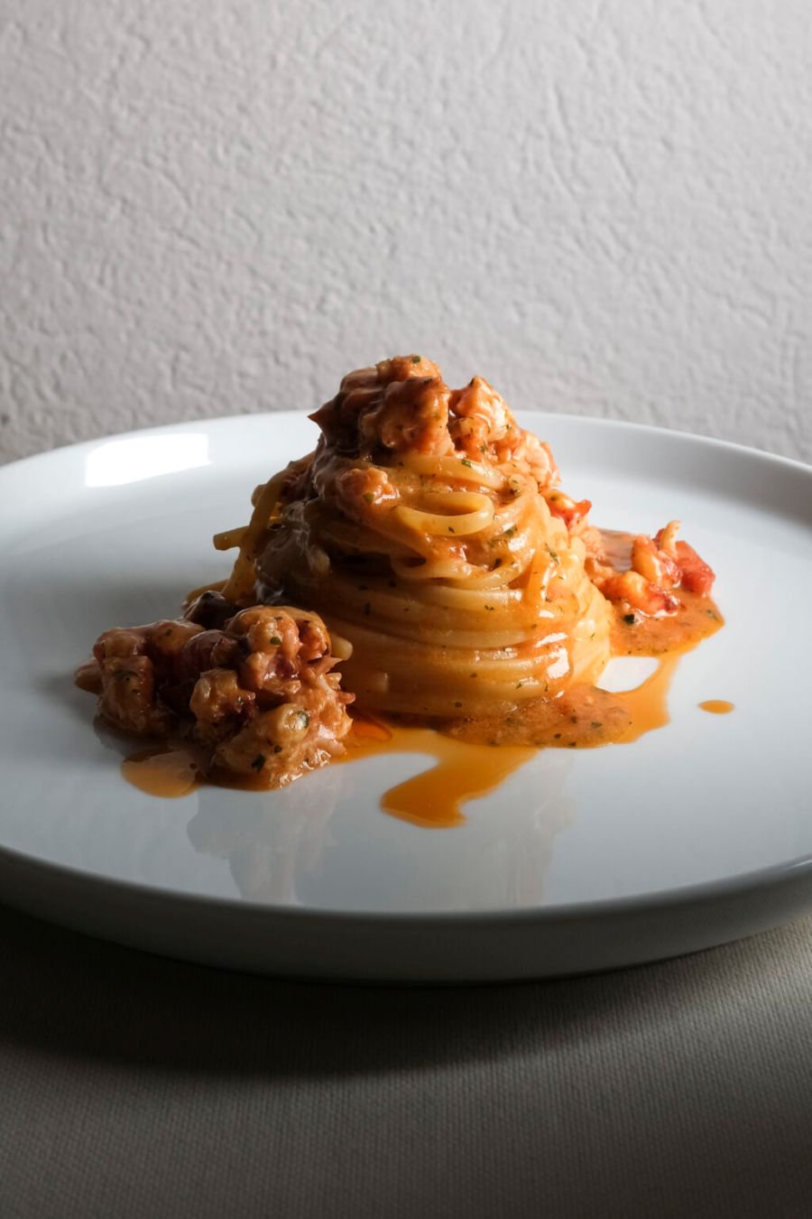Una ricetta semplice, cucinata in rosso, come vuole la tradizione veneta – basti pensare alla busara, la preparazione dei crostacei in un goloso guazzetto, buono con crostoni di pane o come condimento per la pasta – che qui si fa elegante grazie all’utilizzo dell’intero astice, con il cui carapace si realizza una bisque. Le linguine Al Bronzo Barilla vengono bollite al dente in acqua salata e quindi finite di cuocere nella salsa di pomodoro e bisque insieme a un goccio di panna. A fine cottura si aggiunge la polpa dell’astice e prima di impiattare una spolverata di Parmigiano a dare un tocco umami. Un piatto di tradizione che non stanca mai, con l’eleganza della contemporaneità dell’Osteria de La Tana.