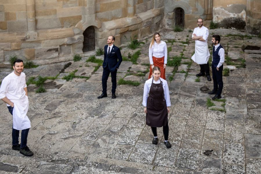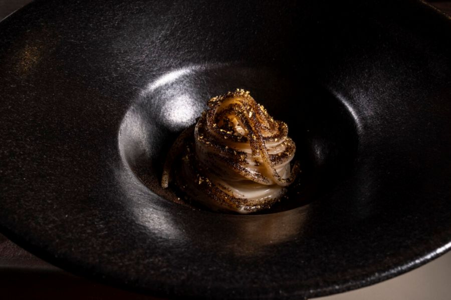 “Coltiviamo e maturiamo questo straordinario ortaggio per offrire un vero piatto a km 0, impreziosito dall’eccellente pasta. Lo serviamo bianco o in versione nero fermentato dalle dolci note di liquirizia, noci e oro, il colore di Arezzo” chiosa lo chef, che con pochissimi ingredienti restituisce un’elegante sintesi di gusto italiano contemporaneo.