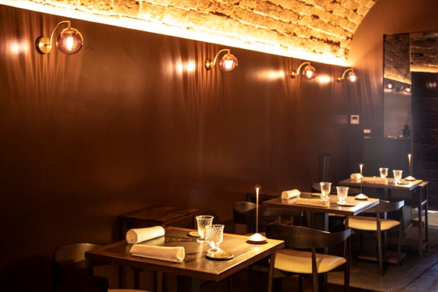 Di questo spazio antico Fatjon ha voluto mantenere l’essenza, nel soffitto a botte, i muri in mattoncini, le pareti nei toni caldi ed eleganti del cioccolato, la ricerca sui materiali naturali come legno, ferro e pietra, e i loro colori neutri e caldi. Aperto a cena, con una ventina di posti a sedere, Osteria Grande presenta un menu che racconta una cucina di terra e di mare, con materia prima che parla toscano e che omaggia i mestieri antichi, come il contadino, il pescatore e l’antiquario, che sono anche essenza di questa città che oltre le mura storiche è già immersa nella campagna. Uno stile gastronomico che dal gusto locale allarga lo sguardo verso la toscanità fino ad abbracciare la cultura mediterranea, in cui entrano anche ricordi primigeni della cucina di casa – lo chef ha origini albanesi – e le suggestioni dei viaggi compiuti nel tempo.