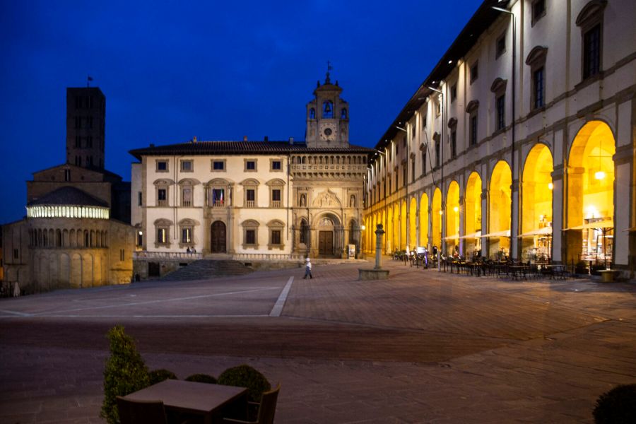 Piazza Grande, nel centro storico di Arezzo, è senza timore di esagerazione una delle piazze più belle d’Italia, per la sua forma irregolare e leggermente pendente, e per essere stata progettata da Giorgio Vasari su commissione di Cosimo de’ Medici – che si erano impossessati della città sul finire del Trecento –con le caratteristiche logge. Nei secoli è stata fulcro della vita cittadina e ancora oggi è il simbolo e il luogo di ritrovo degli aretini, grazie a fiere ed eventi di richiamo nazionale e internazionale, come l’importante Fiera antiquaria che si svolge ogni primo fine settimana del mese, e soprattutto la Giostra del Saracino, che si tiene in due momenti dell’anno, a giugno e a settembre.