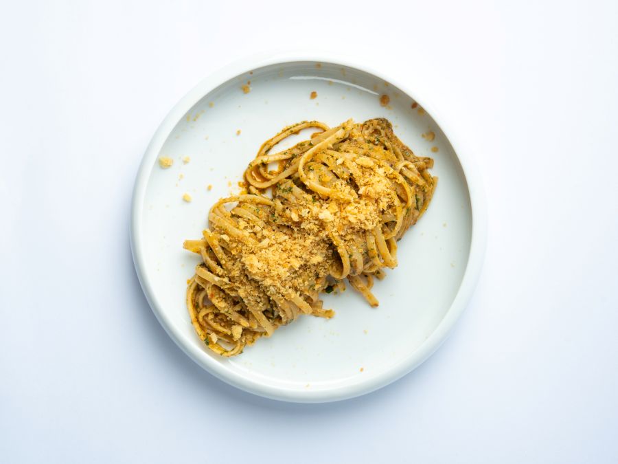 Quando si tratta l’argomento pasta, lo chef si emoziona: «quando dico pasta penso alla famiglia e alla convivialità, e penso a mio padre, che mangia solo quello!» La pasta ha un ruolo importante da A Truvatura: proprio come un tesoro riscoperto per lo chef rappresenta “la prima portata nel mio ristorante” e la possibilità di inscenare quell’omaggio alla centralità della pasta nella cultura romana. Così nasce la sua amatriciana iblea, ottenuta con del guanciale di Chiaramonte, il pomodoro siccagno – in siciliano “secco” perché non si innaffia mai durante il periodo di giugno – e poi la cipolla di Giarratana.