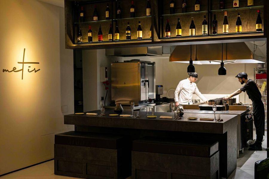 A Metis la sala è una sola, elegante e contemporanea, con la cucina a vista come un palcoscenico teatrale. Il menu cambia seguendo le stagioni, come un film che si riscrive scena dopo scena. Tra i piatti manifesto, la Fettuccina di sedano rapa con parmigiano e tartufo racconta l’autunno con la sobrietà di un romanzo russo; la Tartare di tonno con frutto della passione, shiso e yuzu svela invece l’influenza giapponese, fatta di precisione e contrasti misurati. Pane e pasta sono fatti in casa, ossessioni felici che parlano di tempo e cura.