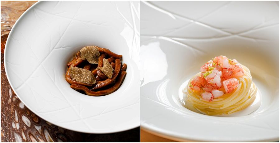 La passione per la fermentazione – miso di nocciola, soia di porcini, aceto di peperoni – è il laboratorio segreto dove il familiare incontra l’ignoto. Qui la cucina diventa alchimia: sapori audaci ma eleganti, mai urlati. Piatti come il Maritozzo con mazzancolla fritta o i Tortelli di zucca fritti, da mangiare con le mani, giocano con la memoria popolare e la trasformano in gesto contemporaneo. Poi c’è la Quaglia glassata con purè e tartufo nero, un omaggio esplicito alla classicità francese, come una scena girata in bianco e nero: rigorosa, senza tempo. E infine il dessert simbolo, Uovo nel bosco, nato nel 2017 da notti insonni e stampi improvvisati, oggi diventato racconto identitario. Come certi finali memorabili, resta impresso perché parla di fatica, intuizione e perseveranza.
